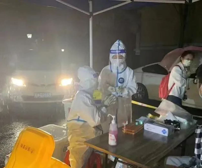 3月14日在接到通知后,麗水市人民醫院200名醫務人員緊急馳援衢州采集核酸。團支部書記劉銷鋒、羅芳敏、王潔、劉鑫等人絲毫沒有猶豫,緊急收拾物品,火速集合,準備出發。援衢采樣隊用時約3個半小時抵達衢州柯城區,在當地工作人員的帶領下,冒雨前往各個檢測點,直到次日凌晨才完成全部采集工作。