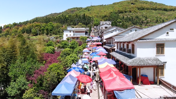 這幾天,圣井山上1500多畝野生杜鵑花競相綻放、美不勝收,每天能吸引3000多名游客前來踏春賞花。游客的到來也讓當地村民抓住商機,紛紛售賣本地土特產品。在上山道路兩側,擺滿了攤位,村民們拿出中草藥、番薯干、土雞蛋、菜干等當地農產品,向過路的游客賣力吆喝。