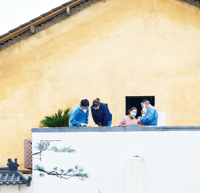 4月19日下午,在金華婺城區青年路上,兩名志愿者開展上門排查工作。據了解,從4月19日開始,金華市區全面開展“清村掃樓”工作,眾多志愿者在抗疫一線奔波,他們與社區形成合力,高效協同,以快制快不松勁,努力確保核酸檢測等后續工作不漏一人、不留風險,摸清居民底數,為助力抗疫提供扎實的數據支撐。廣大居民面對上門調查,積極主動配合,為全民抗疫貢獻自己的一份力量。(黃澤振)