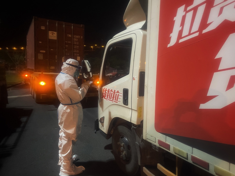 “您好,請您和隨行人員出示一下健康碼、行程碼和核酸檢測報告……”葉玉龍對一名貨車司機說。身為黨員的葉玉龍曾多次參與社區聯防聯控工作,在接到志愿服務號召后,他毅然出列,協助工作人員對往來車輛進行雙碼雙查、防疫信息登記工作。
