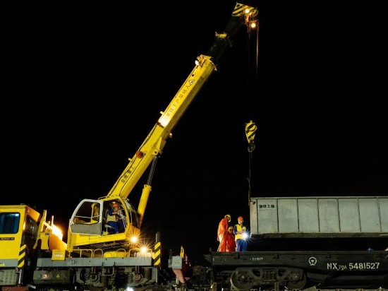 每晚最后一趟列車過后,夜間施工正式開始。蔡淵明攝