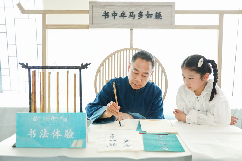 活動現場舉行了一場“宋韻市集”,該市集設置“書中自有千鐘粟”“書中自有黃金屋”“書中自有顏如玉”“書中車馬多如簇”等四大板塊八個體驗點,營造出宋韻文化互動式體驗的濃厚氛圍。