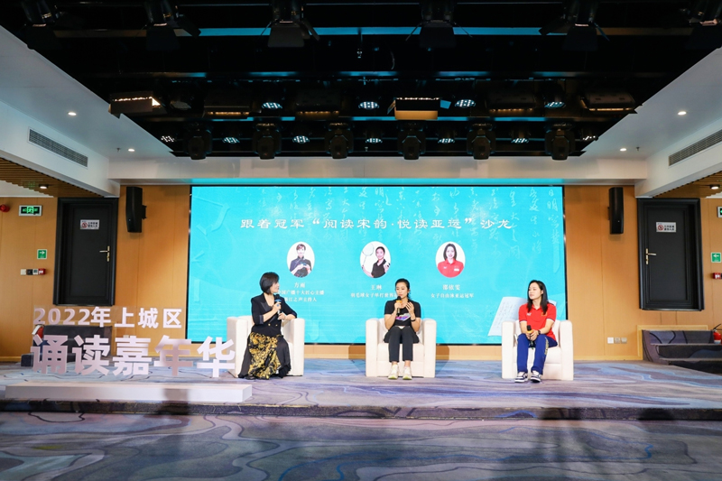 2022年是第19屆亞運會舉辦之年,在“閱讀宋韻、悅讀亞運”小沙龍板塊,羽毛球世界冠軍王琳和游泳亞運冠軍邵依雯現場分享了不少宋代文學作品和宋代歷史人物典故。她們表示,宋韻文化中對待世事、對待生活的態度,給予了他們在賽場上奮勇拼搏的力量以及熱愛生活的心態,這與運動員們在競技賽場上為了祖國榮譽而戰的信念不謀而合。