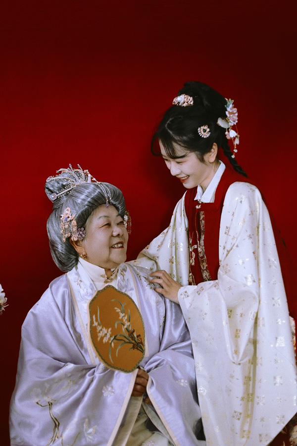 “剛穿上婚服的時候,奶奶很不習慣,看久了她就覺得還挺好的,穿著也舒服,像古代電視劇里的貴太太!眲Ⅵ⿶傉f。