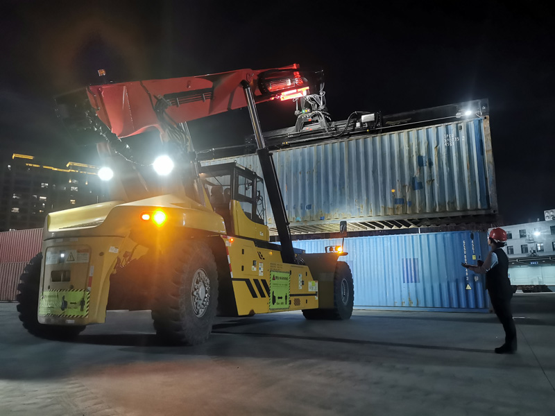 “義新歐”班列夜間裝車作業現場。奉齊齊攝
