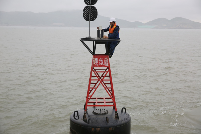 工作人員進行作業。寧波航標處供圖