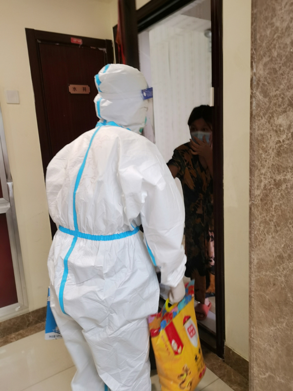 4月25日,社區工作人員聯合蘇荷苑小區“蘇荷@之隊”志愿者服務隊、南星社區星靈公益志愿者服務隊一起點對點上門,將暖心大禮包送到居民手中。