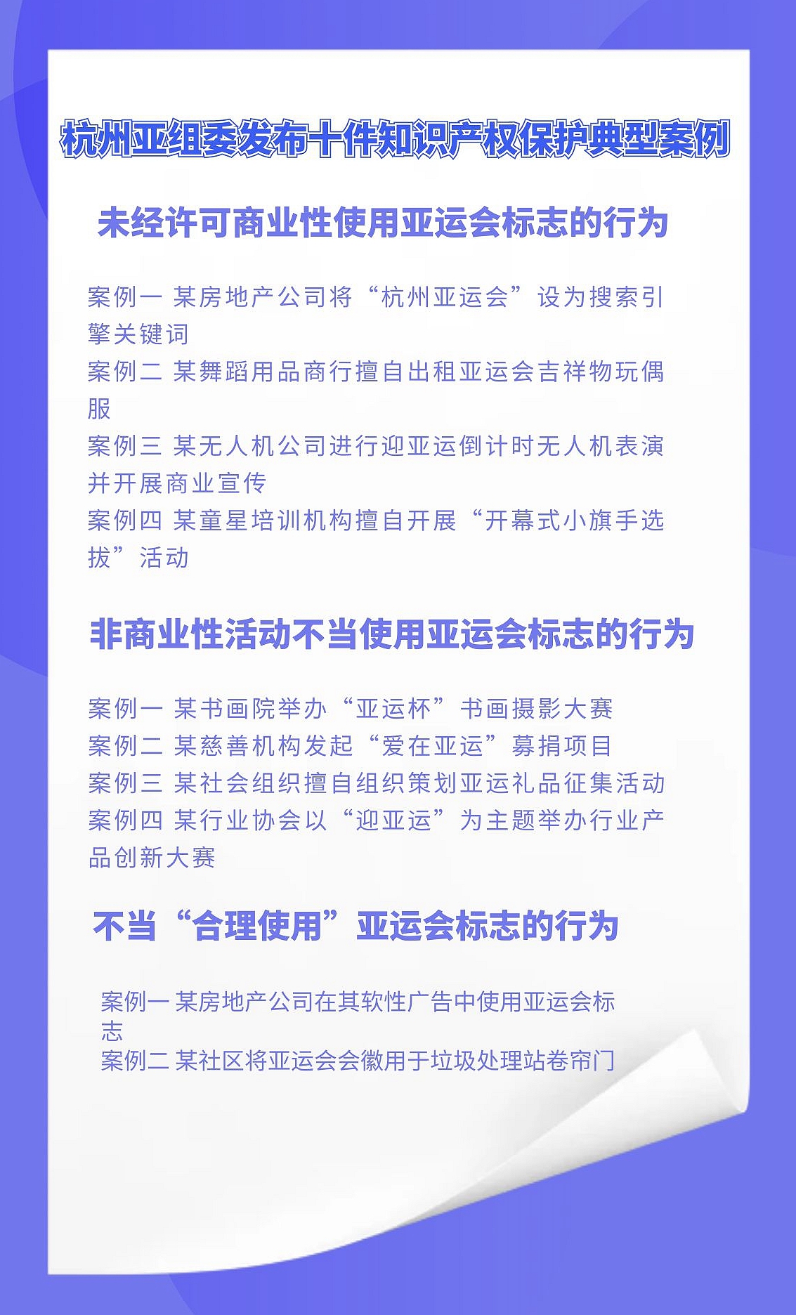 杭州亞組委發布十件知識產權保護典型案例。張麗瑋制圖