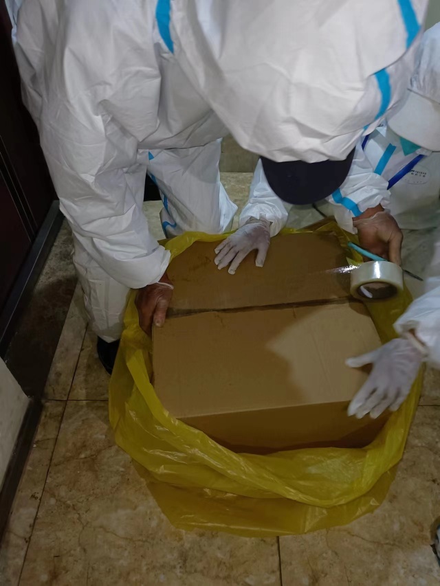 垃圾清運小分隊將封控區垃圾打包裝箱
