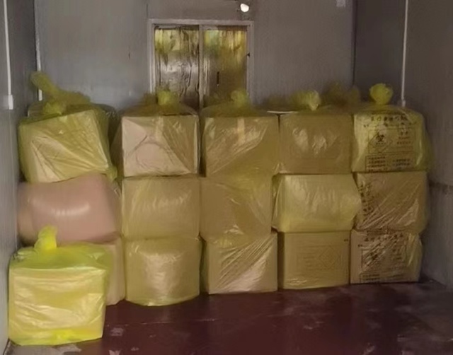 早上7點不到,龐李強和其余清運小隊隊員已經“穿戴”整齊,開始一整天的忙碌工作:將居民放置的生活、醫療兩類垃圾進行消殺和分袋打包,帶至樓下裝箱后送到不同的轉運處置地?此坪唵蔚墓ぷ,他們卻要不停地彎腰、打包、裝箱,一戶挨著一戶,一層接著一層,一幢挨著一幢,不敢放松絲毫!斑@個工作不能馬虎,不然大家都要跟著遭殃!饼嬂顝娬f,作為疫情防控保衛戰的重要一環,封控區內的垃圾清運不能出現一絲紕漏。
