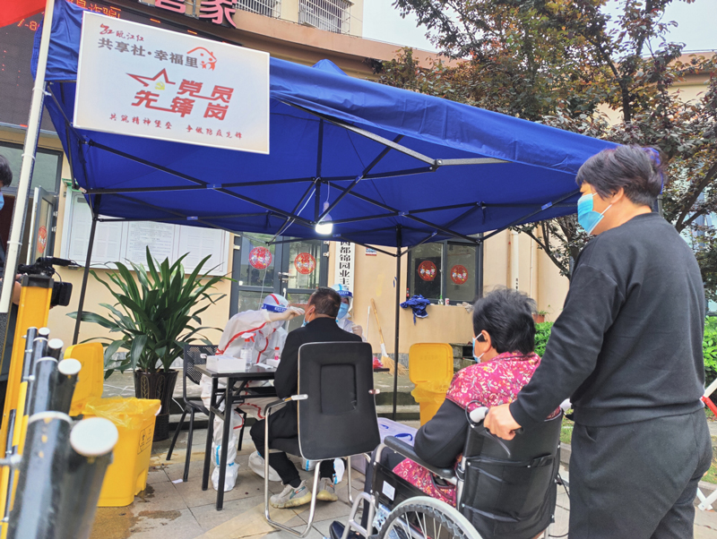 點位的搭建、運行彰顯出“黨群連心·分組包戶”工作特色。4月29日晚上,小區黨支部在業主微信群內發布“尋醫啟事”和志愿者招募令,住在小區內的外垟村衛生室醫生陳建慶帶頭響應,“我就是醫生,我來負責核酸采樣!卑胄r內,就有20余名支部黨員、積極分子報名。第二天上午7時,首批12名自治式核酸采樣點志愿者準時到位,來自藤橋鎮防控辦的核酸檢測物資也如期送至。搭篷、設桌、圍欄、畫線……在藤橋鎮黨委及鎮防控辦指導下,一個規范的核酸采樣點迅速搭建。居民蔡金祿表示:“在家門口設點很貼心。我們小區高齡老人多,平時去鎮里檢測挺不方便的!