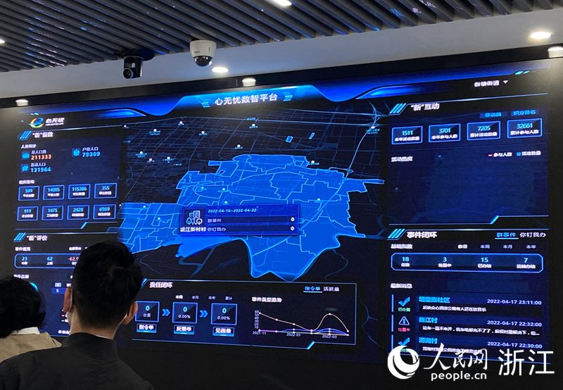 “心無憂”數字治理中心的指揮大廳。蕭山區新塘街道供圖