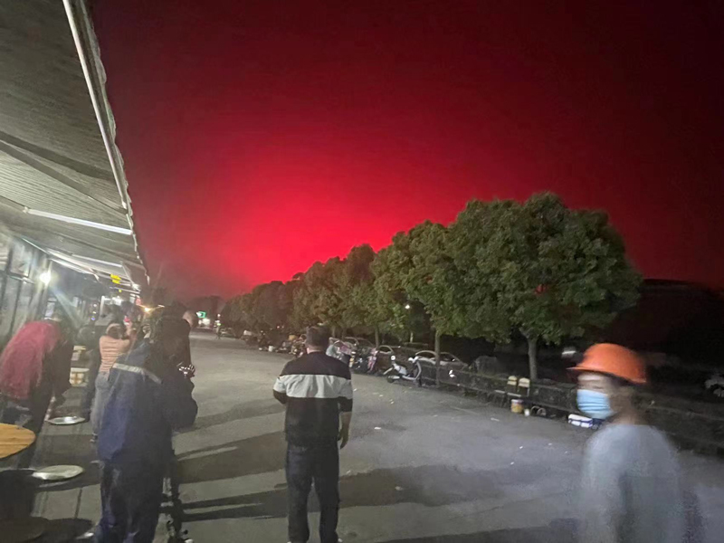 5月7日晚8時許,浙江舟山出現罕見紅色天空,F場目擊者表示,根據紅光的發散狀態進行定位分析,判斷其中心位置應該位于舟漁公司碼頭附近。