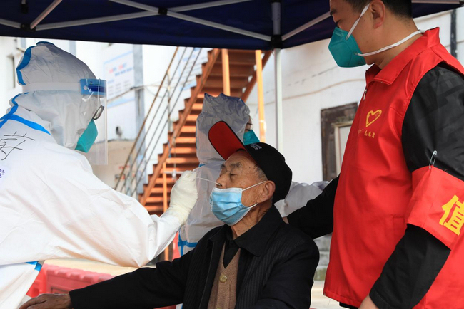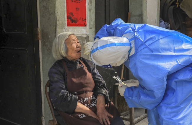 醫護人員上門為高齡老人進行核酸采樣。陳凱旋攝