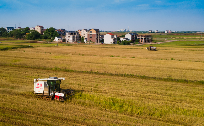 5月16日下午,金華市金東區塘雅鎮萬畝良田區塊里機聲隆隆,4臺聯合收割機在滾滾麥浪中穿梭,收割成熟的小麥。據介紹,收獲的小麥品種為“揚麥23”和“寧麥133”,面積1200多畝,這幾天天氣晴好,可在3天至4天時間內可收割完畢。(時寬兵)