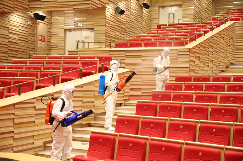 劇院進行防疫消殺工作。杭州臨平大劇院供圖