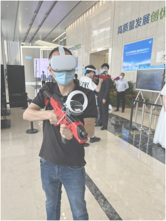 咪咕XR數智競技項目展示的是多人VR大空間對戰模式,現場采用了云XR部署的模式和專利的大空間定位技術。依托于5G-A的XR Pro提供萬兆體驗能力,實現了XR數智競技輕量化、無背包的沉浸式體驗,擺脫了線纜對賽事的束縛,將賽事網絡部署耗時大幅縮減,并能滿足更多用戶參與競技,擴展了數智競技的設計空間,大幅提高應用范圍,將極大推動XR消費級應用的普及和發展。