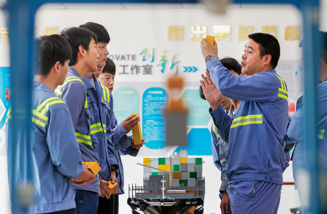 談及未來,竺士杰表示:“希望做好傳幫帶,讓更多徒弟成為工匠、勞模,為寧波舟山港打造世界一流強港貢獻力量?!?/p>