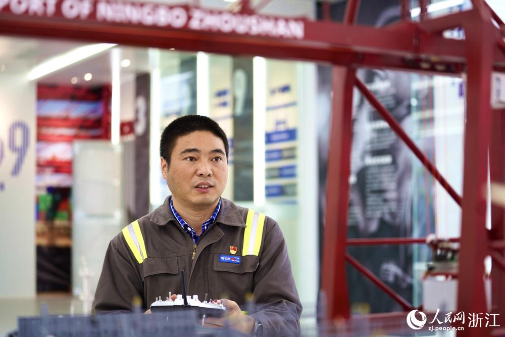 寧波舟山港北侖第三集裝箱碼頭有限公司橋吊班大班長竺士杰。人民網 郭揚攝