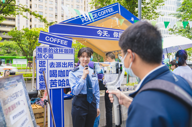 同時,隨著“坐在警務站里喝咖啡”話題持續火爆,公安民警將踐行“三能”要求與參與創意市集相結合,創新推出了“蜀黍請你喝咖啡 反詐知識帶回家”快閃活動,以更有活力、更接地氣、更潮流入時的方式,讓年輕群眾在學習知識的過程中,還能品嘗到香醇可口的咖啡。