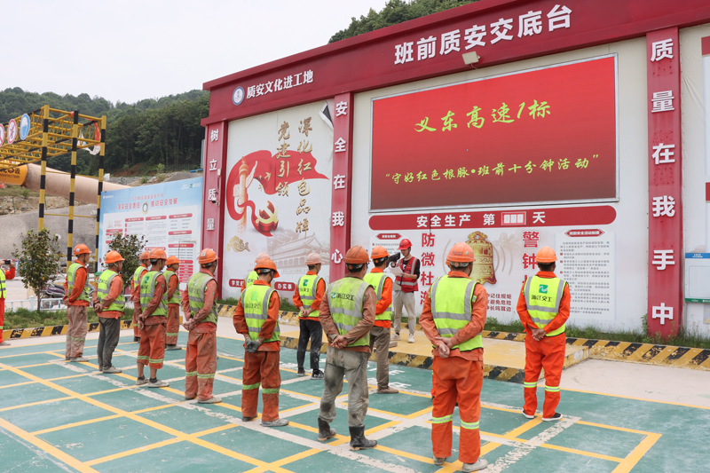 清晨6點,在義東高速東陽段TJ01、TJ02標段施工現場,大屏幕正播放著《大國工匠》紀錄片!斑@是開啟新一天工作的‘儀式感’!卑嘟M長俞金奎說,“生活需要儀式感,工作也是一樣。每天的‘班前十分鐘活動’雖然時間不長,卻能讓工人們汲取奮進力量,讓員工對工作崗位多一分熱愛、多一份干勁!