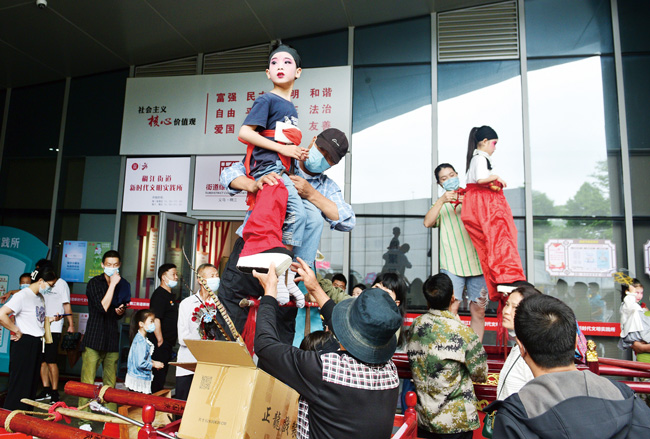 6月11日是我國“文化和自然遺產日”。當天上午,金華義烏在文化廣場舉行非遺宣傳展示系列活動,活動包括“多彩非遺”民俗展演、“哆來嘻”非遺交流會等,市民在下沉廣場觀看抬閣翹、百子燈制作、糖畫制作等展演。在義烏市非物質文化遺產館,市民通過看展出、聽聲音等形式,進一步感受非遺的魅力。(錢旭升)