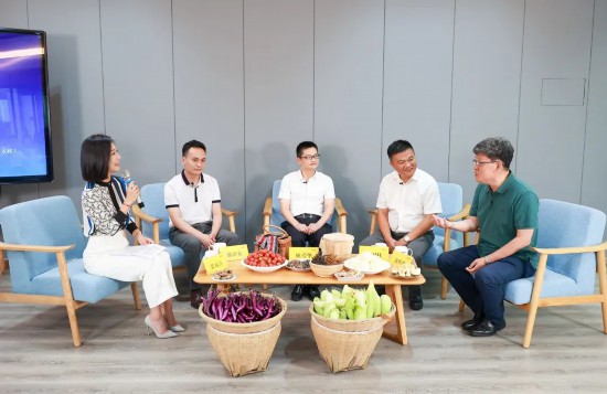 杭州電視臺新聞主播張宛詩與杭州市農業農村局副局長姚愛華,浙江順聯網絡科技有限公司董事長、順聯動力商城創始人郭洪安,杭州映山紅農業科技開發有限公司董事長孫國柱,以及特邀評論員俞柏鴻共同展開探討。