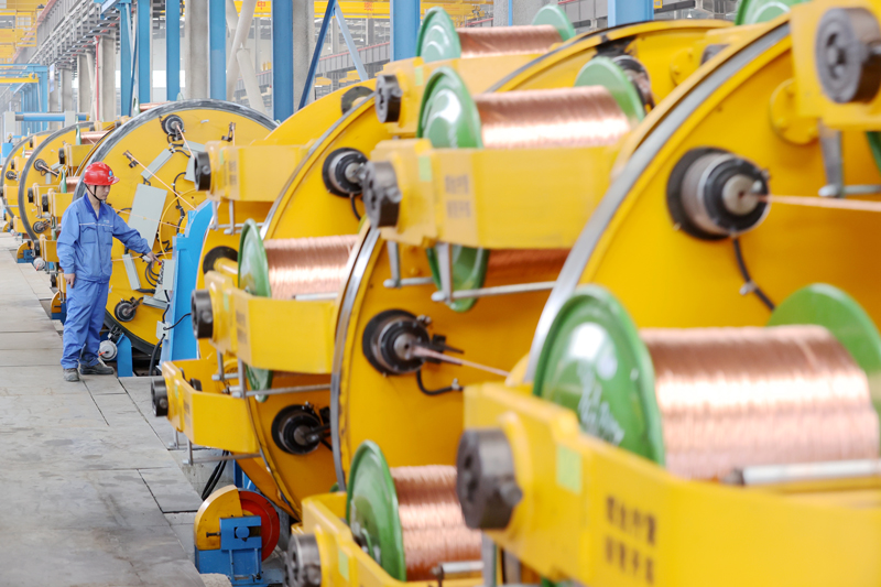 工人在智能化生產車間趕制特種線纜訂單。謝尚國攝