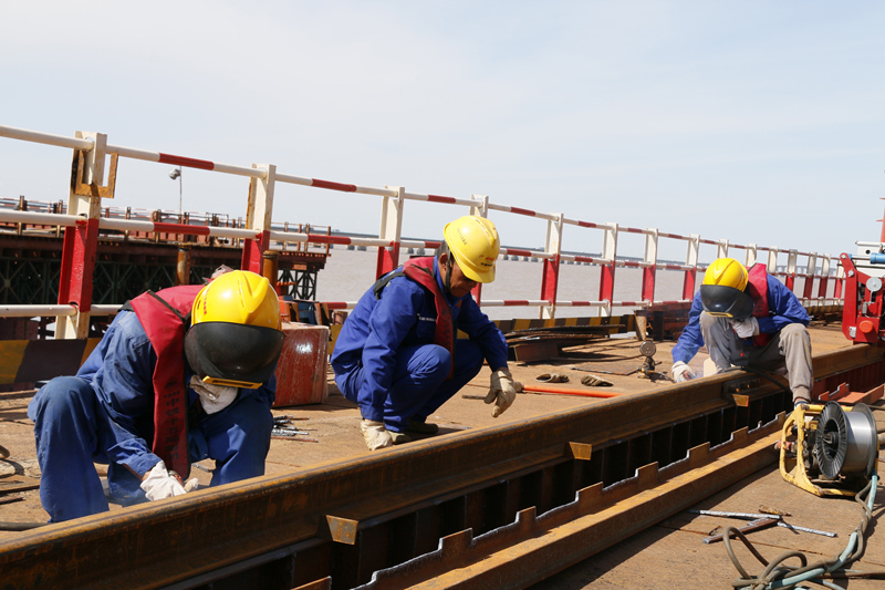在濱?;ネㄊ┕がF場,鋼筋班工人劉曉飛和他的工友們正在配合吊車,將加工好的墩身鋼筋籠與樁基預留鋼筋進行精準焊接?!颁摻罨\的安裝對于定位和精度要求非常高,雖然現在天氣熱,但是每一道工序、每一個操作我們都不能馬虎。只要工程干得好,我們辛苦點也值了?!眲燥w一邊認真仔細地校正鋼筋的位置,一邊用焊槍對鋼筋位置進行固定。