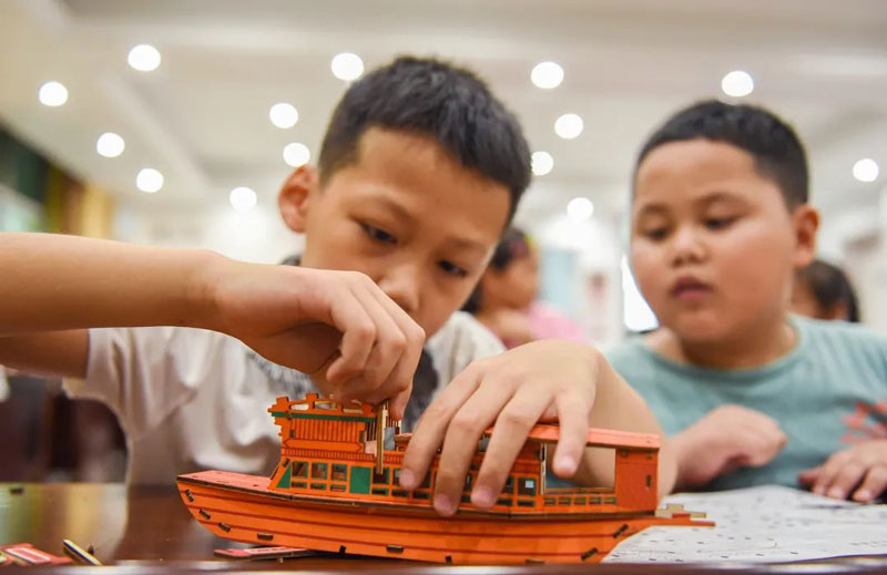 孩子們動手制作紅船模型。文成縣委宣傳部供圖