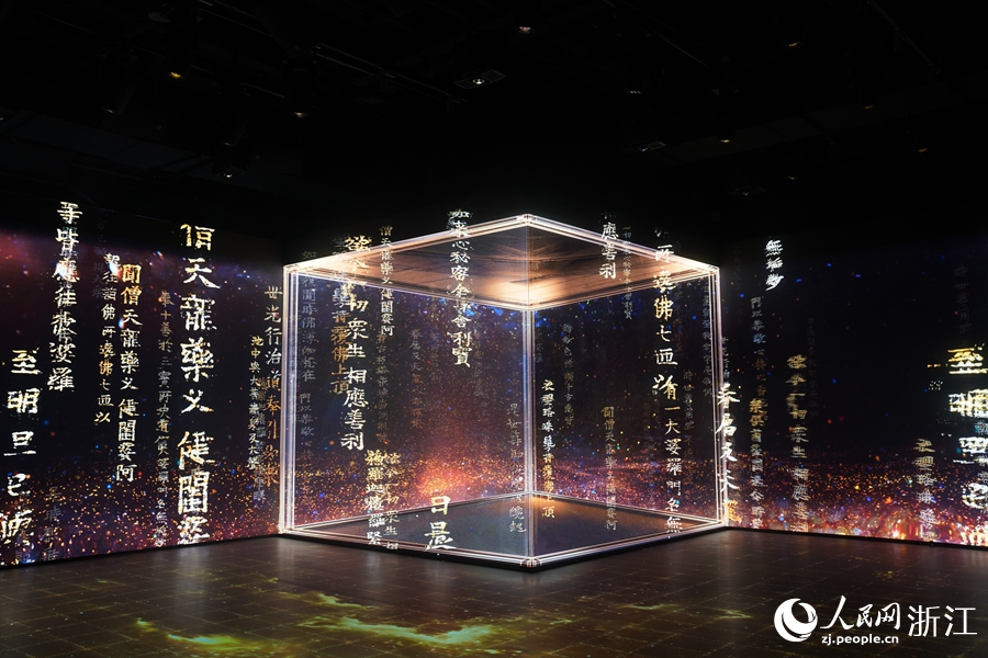杭州國家版本館數字館是一個版本數字展廳,以“數字版本+沉浸多媒體空間”的形式展現中華版本內涵,提煉展示中華優秀傳統文化精神標識的當代價值。展廳通過“裸眼3D+沉浸式光影”方式,虛擬化玉琮王、五代雷峰塔經卷、元龍泉窯青瓷舟形硯滴、龍井茶證明商標、共產黨宣言等浙江特色版本珍品。
