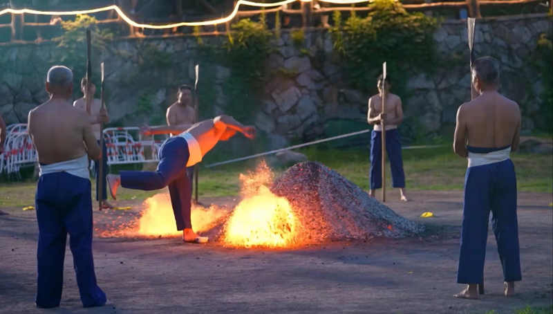 在剛播出的節目中,嘉賓受邀欣賞非物質文化遺產表演“煉火”。伴隨鼓點,身著原始服飾的青壯年們赤腳在燒紅的炭火堆中回旋奔跑,持棍揚起漫天火星以驅邪求福,場面粗放神秘,具有濃厚的地域文化特色。