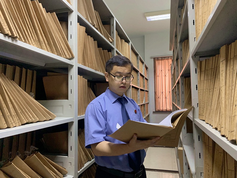 承辦檢察官在檔案室查看卷宗。樂清市人民檢察院供圖