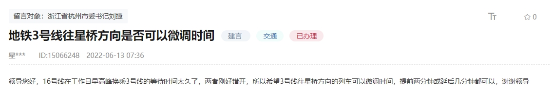 人民建議|杭州網友建議微調地鐵發車時間,減少早高峰等待時間