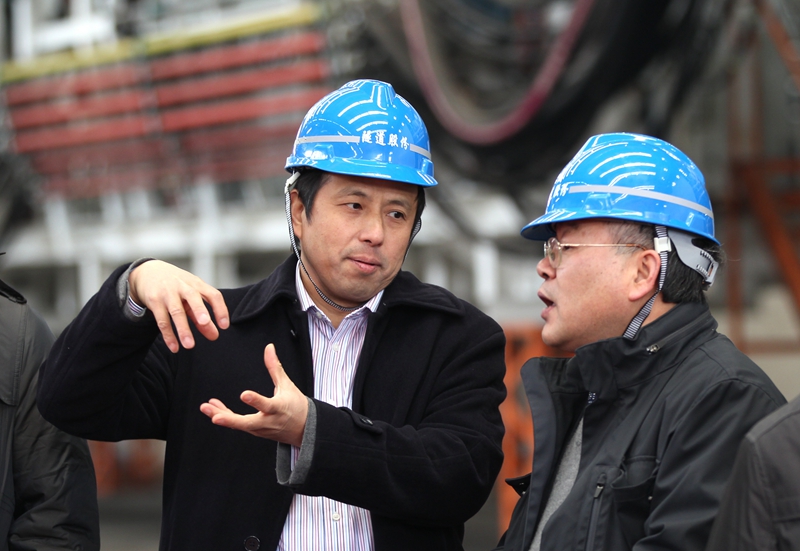 楊華勇(左)帶領團隊研發出我國首臺盾構裝備。浙江大學供圖