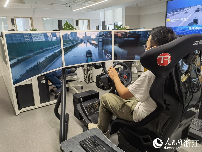 之江實驗室智慧交通研究中心智能駕駛仿真測試與訓練平臺。人民網 張帆攝