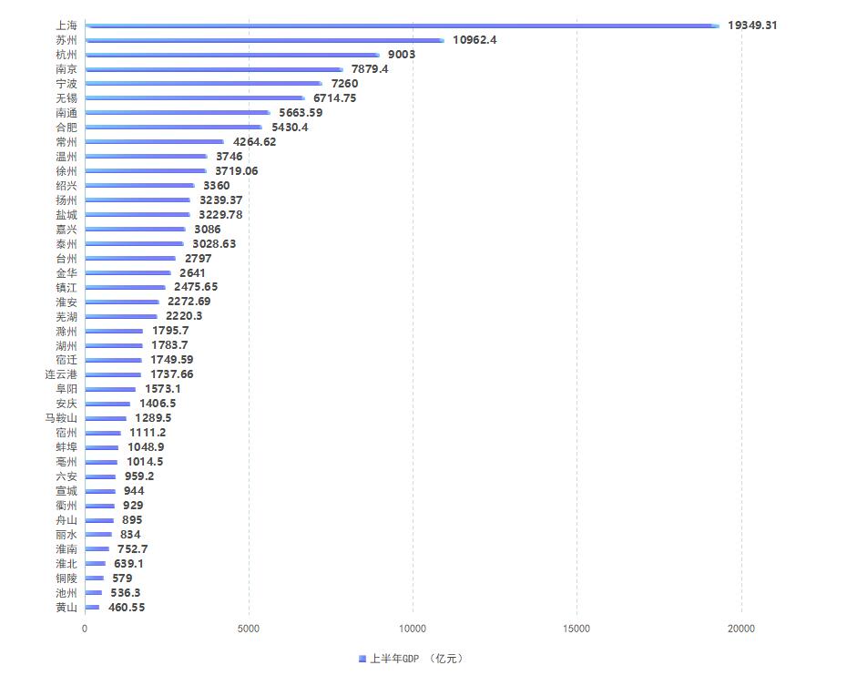 2022年上半年長三角41地市GDP總量超13萬億元 舟山增速最為迅猛