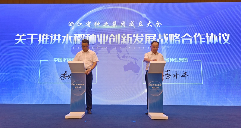 成立大會上,浙江省種業集團與浙江省農科院、中國水稻所簽署戰略合作協議,后續將充分發揮種業國企和科研機構各自優勢,積極探索“育繁推”一體和產學研協同的創新發展格局,爭取到“十四五”期末,基本形成以政府為主導、企業為主體、產學研相融合、“育繁推”一體化的現代種業體系,為浙江建設農業農村現代化先行省貢獻種業力量。