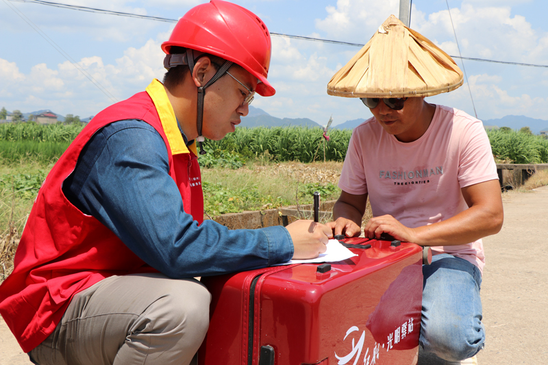 國網衢州供電公司工作人員深入到田間地頭,送上“親情化”供電服務,保障農戶灌溉用電無憂。徐藝璇攝