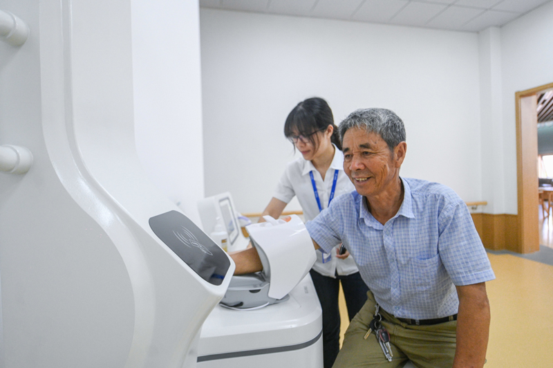 老人正在居家養老服務中心測量血壓。南潯區數改辦供圖