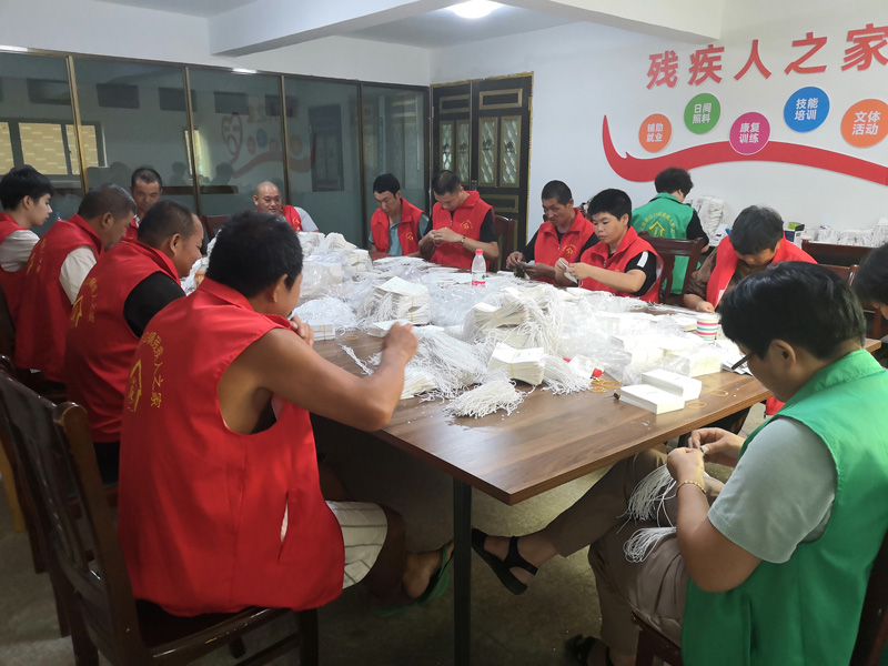 在峃口鎮新聯村,一處占地面積達300平方米的“殘疾人之家”熱鬧非凡。為了讓殘疾人也能坐上共同富裕的“快車”,新聯村兩委干部大力開展助殘“共富工坊”項目,與企業簽訂長期合作協議,由企業發單到村,在“殘疾人之家”進行技能培訓,“益”呼百應幫幫團志愿者以“一助一”“多助一”“結對子”等形式輔導,幫助殘疾人實現家門口就業。目前,該項目已為30余名殘疾人提供就業崗位,為每位殘疾人實現每年增收1萬余元。此外,選擇在家工作的村民,工坊也會送物料上門,成功帶動附近100余人實現再就業,讓“幸福工坊”成為大家舒心、溫馨的港灣。