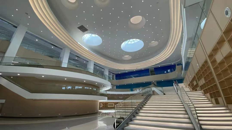 臨平校區不僅有“顏值”,還加入了“硬核”智慧系統。學校的公共多媒體教室位于4號教學樓,共計140間,大致可分為沉浸式教室、固定聯排階梯教室、智慧型多媒體教室、小組研討型智慧教室、小班互動型智慧教室等。每間教室門口都配有智慧電子班牌,教師刷臉即可開啟教室所有設備,動態顯示教室的課程信息和近期安排。同時,還配備了物聯網控制模塊,將整個教室的設備操作集成于一個平臺上,用戶只需通過觸摸屏幕,便可控制多媒體講臺設備、信號切換、投影、幕布、燈光、空調等,直觀可視化的操作界面,使一眾設備的控制變得簡便、快捷,這將為老師和學生開啟全新的智慧教學體驗。
