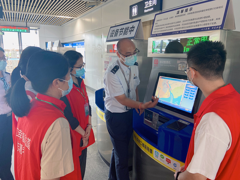 票務中心學員在車站跟崗TVM解說。阮煒婕攝