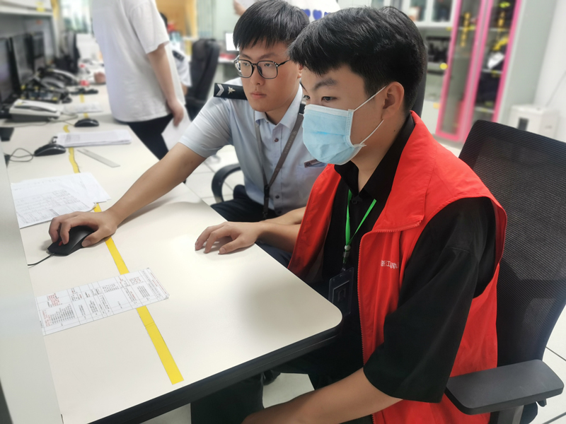 “面向道岔注意順推逆拉,把握道岔方向”“手指口呼,確認進路排列正確”“面對系統平臺檢查注重命令輸入準確性,機房巡檢雙人確認設備狀態”……一幕幕火熱的實操場面在熱浪的“烤”驗下接連“上演”,學員們以實際行動砥礪青春之志、奏響奮斗主旋律。