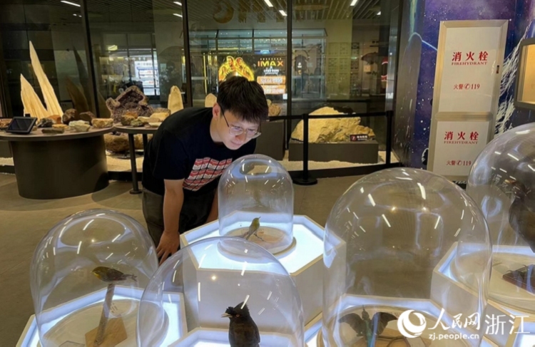 深夜,游客打卡浙江自然博物院·24小時博物館。人民網 王麗瑋攝