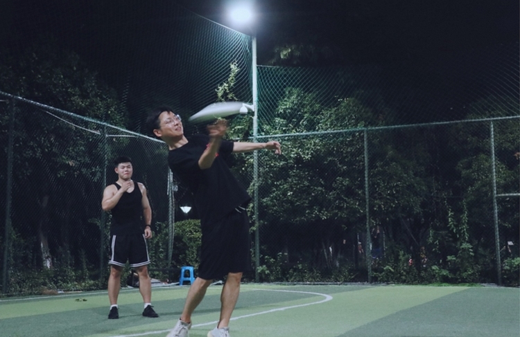 深夜,杭州的年輕人正在享受飛盤運動。葉子攝