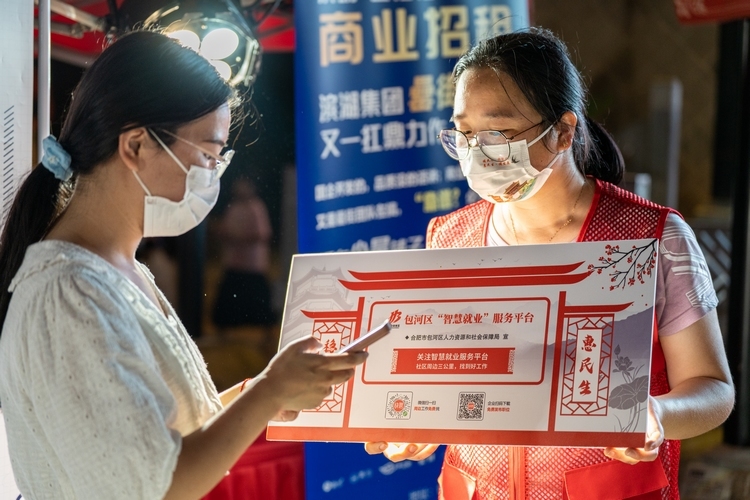 市民在夜間經濟招聘會上掃碼求職。合肥市包河區委宣傳部供圖
