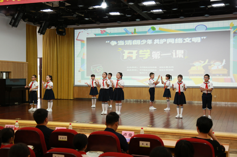 這堂別開生面的“開學第一課”,以“爭當清朗少年 共護網絡文明”為主題,在臨海小學同心廳舉辦,并向該市超十萬名師生同步直播。1個半小時的直播,吸引了6萬余名網友在線觀看。