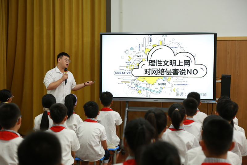 “之所以把網絡文明搬進開學第一天的課堂,是因為剛剛經歷了一個暑假,不少學生還沉迷于網絡世界難以自拔,我們以開課的形式,向廣大青少年發出依法上網、文明上網、理性上網的倡議,幫助他們迅速從假期模式調整到學習模式,迎接新學年?!迸R海市委網信辦專職副主任王艷說。