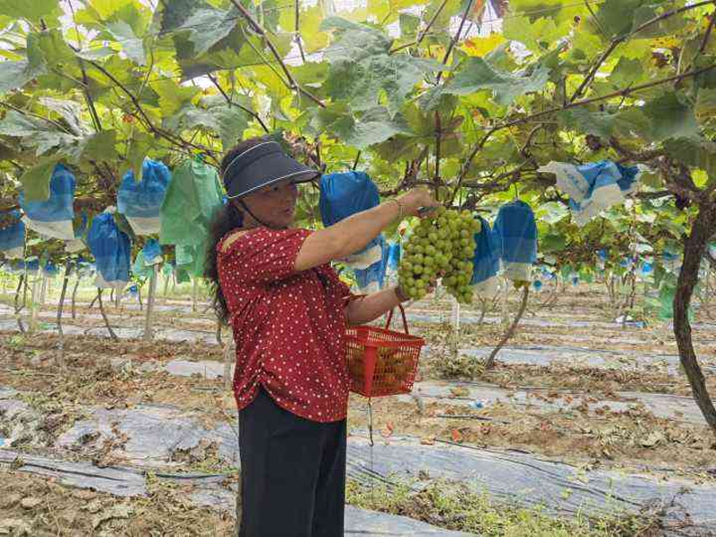 “今年‘陽光玫瑰’的產量約1萬多公斤,目前已經銷售過半,采摘期會持續到中秋節后?!贝魉B說,前幾年受臺風影響,采摘園出現了大棚倒塌、農田被淹等情況,損失較大。由于沒有冰庫,葡萄大批量采收后存儲不便。因此,今年在聽聞臺風要來的消息后,他們便抓緊時間采收、銷售,最大程度減少氣象災害損失。